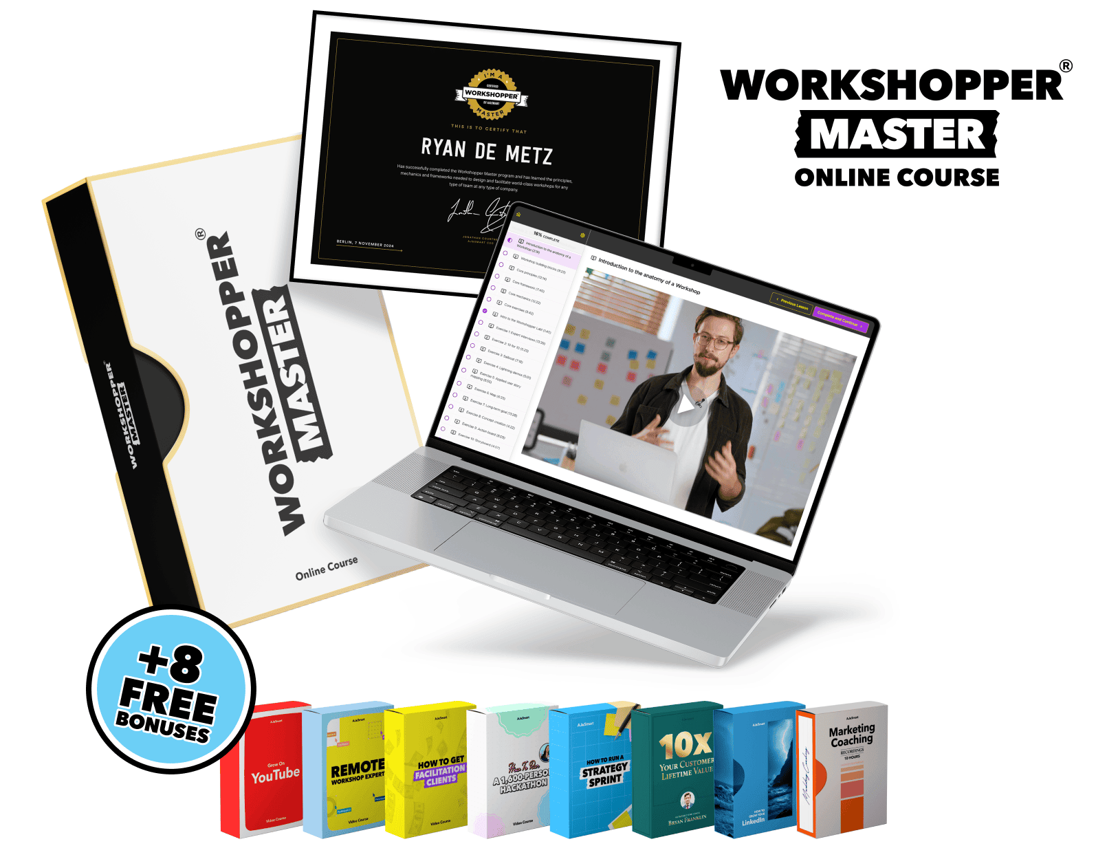 In addition to the Workshopper Master course you'll get 8 bonuses that will maximize your success as a facilitator.